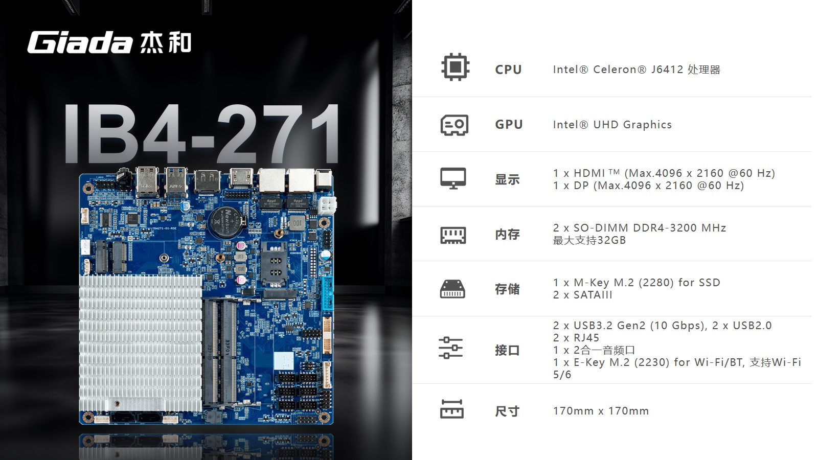 博天堂(btt)IB4-271搭载的是Intel® Celeron® J6412处理器,Elkhart Lake平台在单线程性能上提升了1.7倍,在多线程性能方面提升了1.5倍,具有三个显示输出,包括DP、HDMI 和 LVDS 端口,能够为工业的多媒体应用、标牌显示和数字菜单提供足够的灵活性。