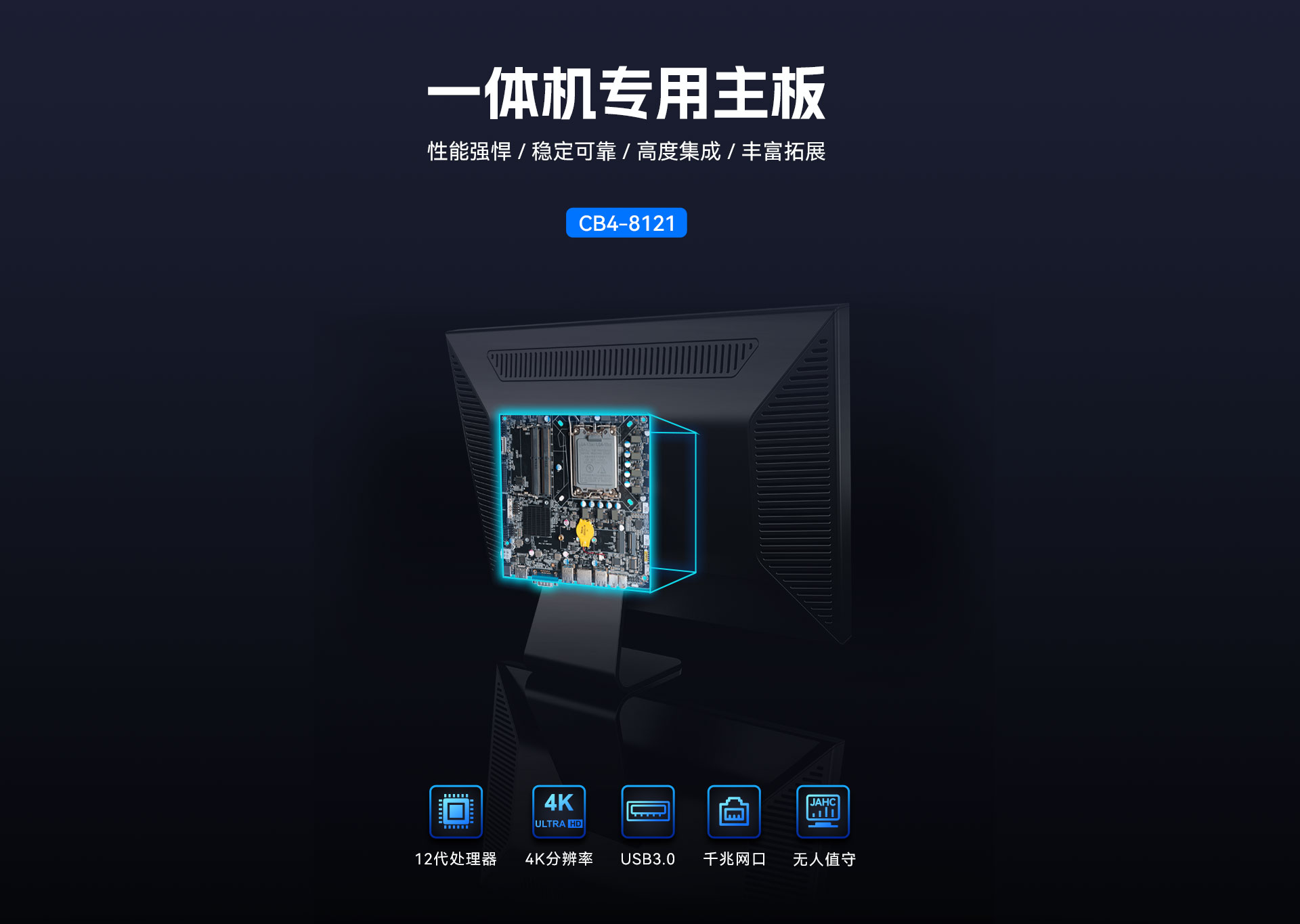 而一体机主板作为一体机的核心组件,其性能直接决定了整机的表现,博天堂(btt)科技根据以上的市场情况及客户需求,推出这款高性能的基于Thin mini ITX一体机标准设计的一体机专研主板CB4-8121。