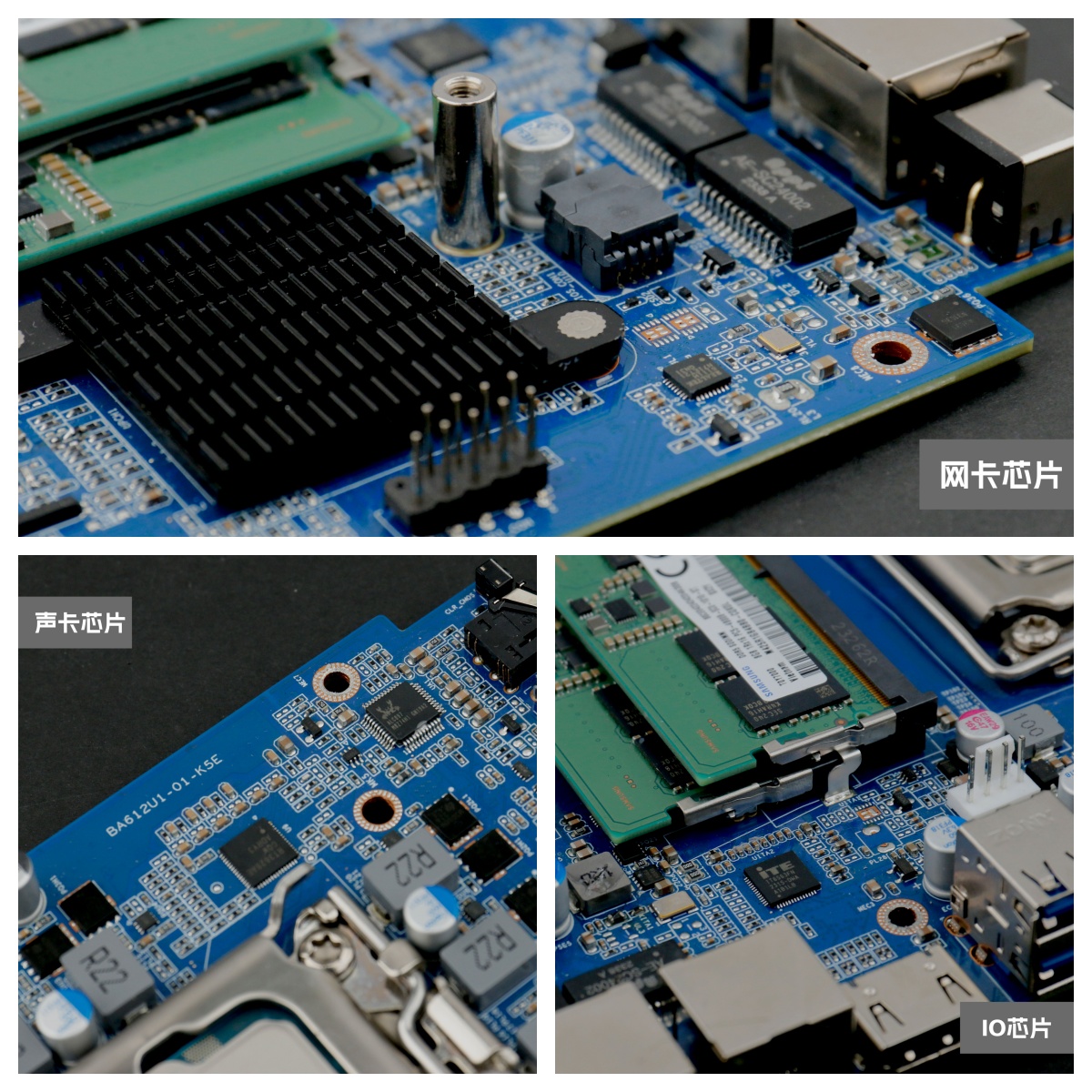 博天堂(btt)桌面云终端Y-BOX P3主板采用的是6相供电,为H610入门级芯片组,CPU附近都分布了相关的芯片,在千兆网口附近有2个网卡芯片RTL 8111H,在主板背面的音频接口附近可以看到1个经典的“小螃蟹”ALC897 声卡芯片,声卡芯片附近有一个I/0 芯片ITE8613E-LX。