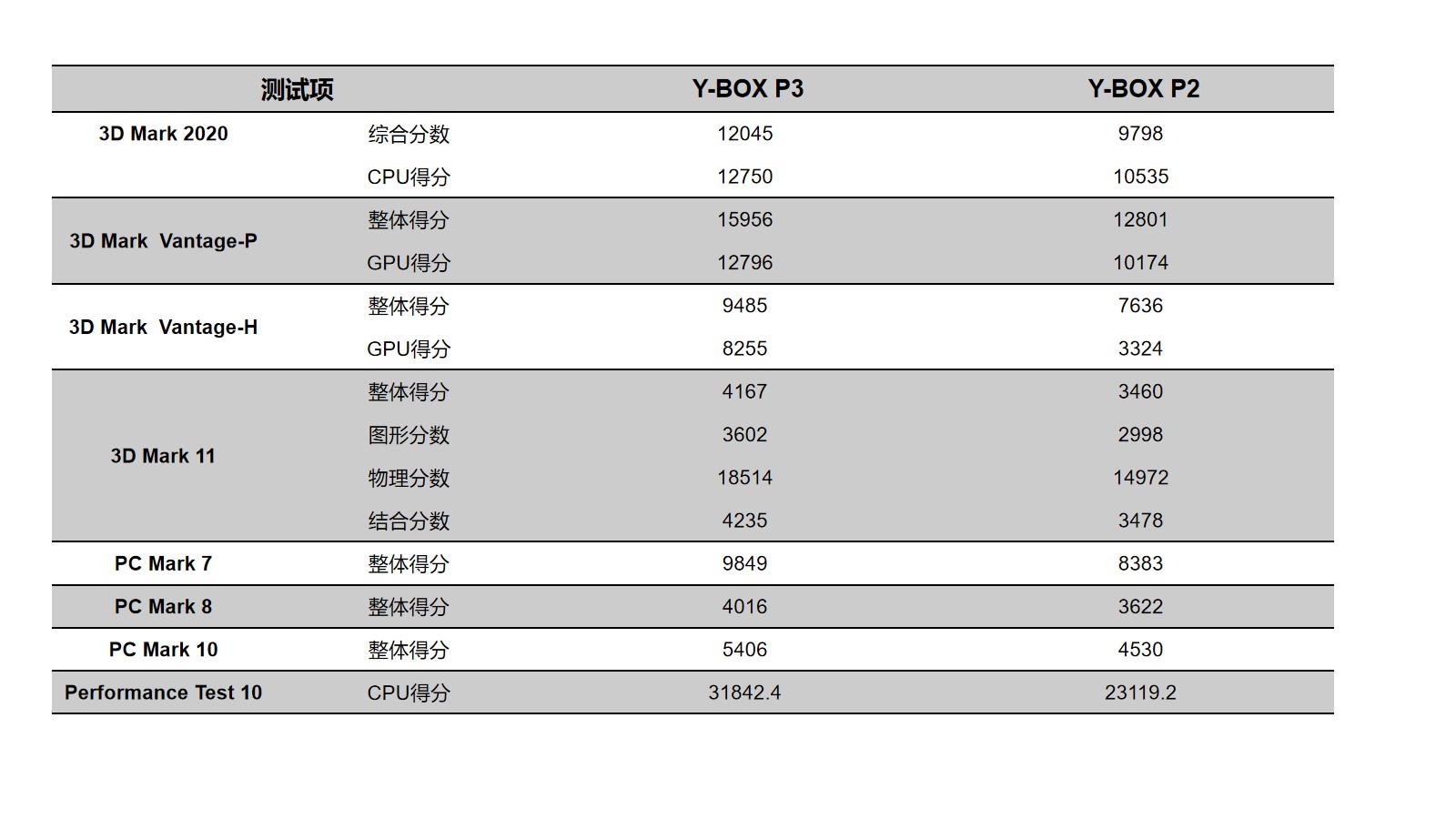 通过数据计算,Y-BOX P3比上一代Y-BOX P2的性能提升了20%,Y-BOX P3综合得分为5406、三个子项目的分数分别为10568/6605/6144,软件出品方提供的建议分数则是4100/4500/3450,证明对轻度办公来说,Y-BOX P3远超预期。