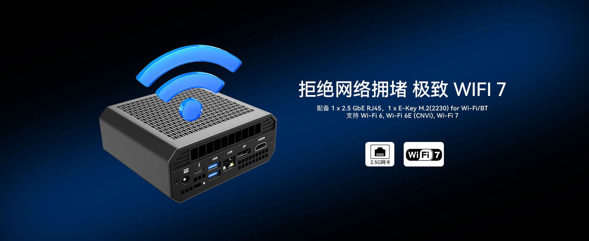 在网络功能上,N601更是诚意十足。配备了一个可用于Wi-Fi 以及蓝牙的M.2(2230)接口,支持Wi-Fi 7,比 Wi-Fi 6E 提高了 4 倍。