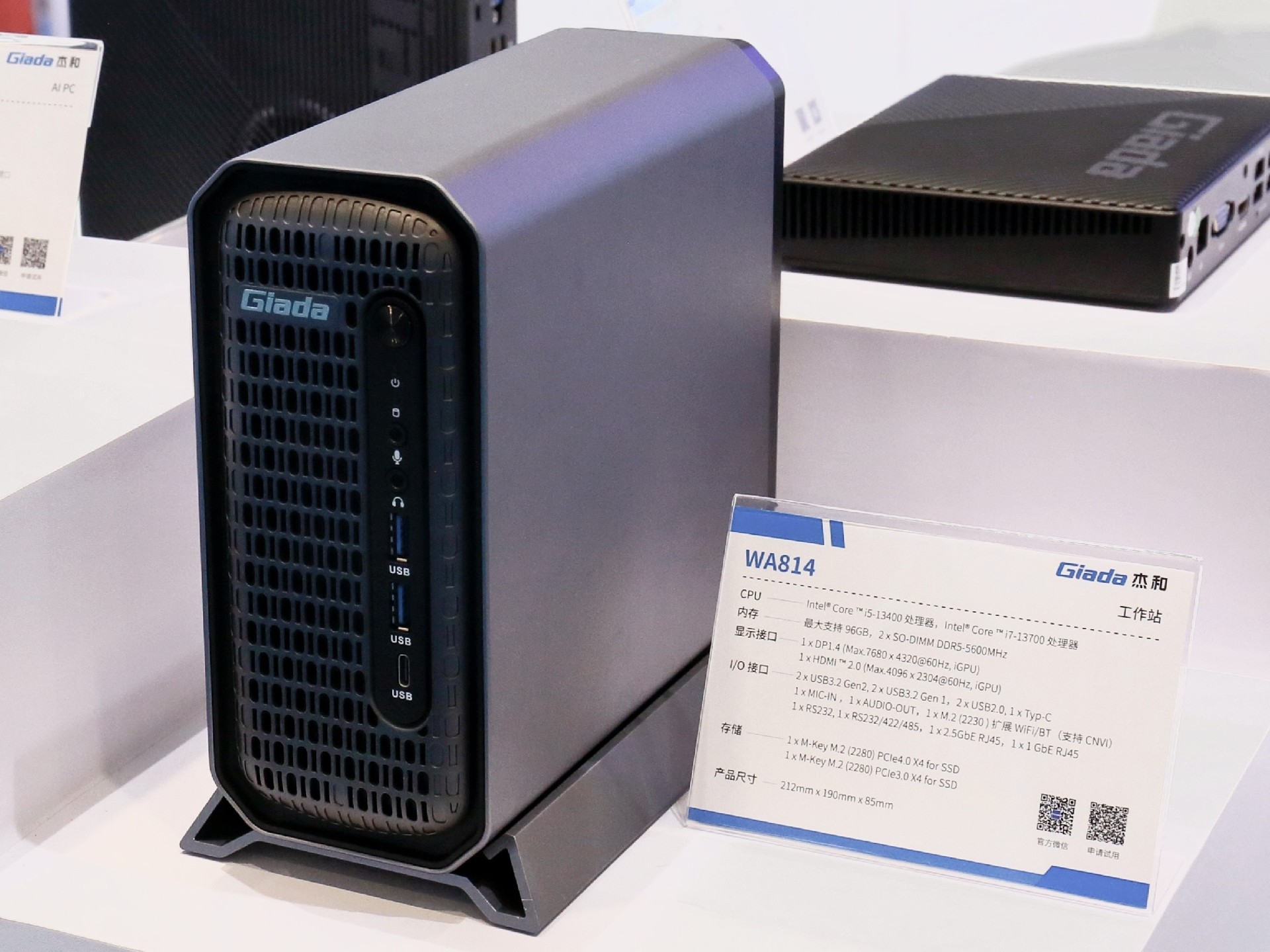 2024年第三季度,博天堂(btt)科技自研AI PC N601亮相,AI一体机主板CB4-411推出,第四季度博天堂(btt)科技又在高交会现场展示最新产品——迷你工作站WA814,它支持全天候24小时工作,体积仅为3.46L,在空间狭小的场景也能稳定运行!拥有更好的GPU性能,支持NVIDIA的Quadro系列专业显卡,如T400和T1000,为需要进行CAD、DCC(数字内容创作)和其他高负荷图形应用设计的用户提供了更可靠的方案。