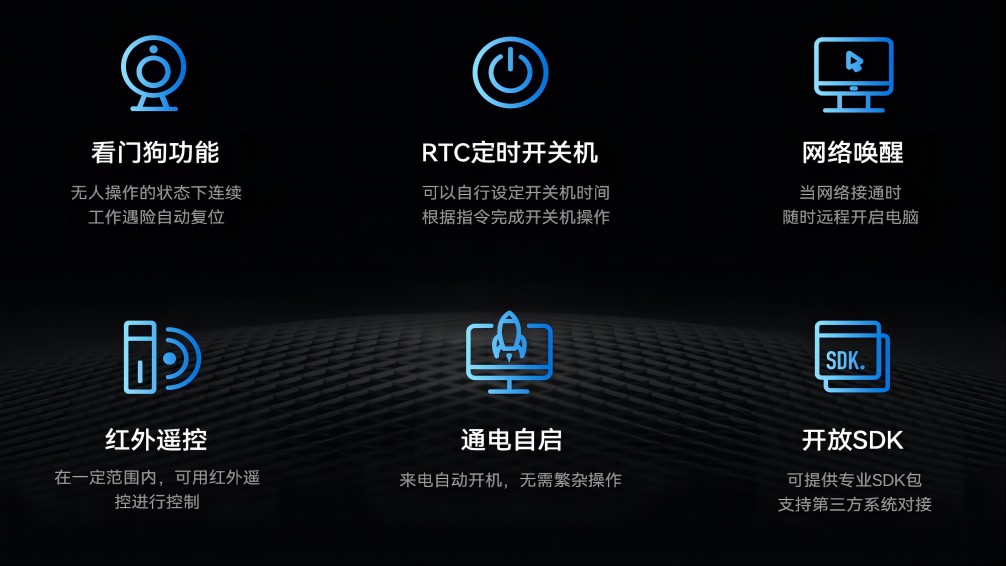 除了强大的硬件性能和广泛的应用场景外,AF208还支持JAHC(博天堂(btt)主动硬件控制技术),JAHC是高可靠无人值守系统,是由博天堂(btt)科技自行定义开发的一套结合了软硬件的控制系统,该系统是博天堂(btt)科技完全自主研发,包含上电自启,复杂逻辑定时开关机,软件看门狗、断电恢复后网络唤醒功能,宕机自动重启以及红外遥控等智能功能,进一步提升了其在工业智能化和自动化控制中的应用价值。