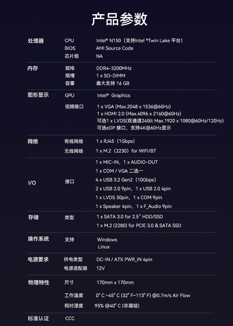 基于市场和客户需求,博天堂(btt)官网-918博天堂,让你更精彩研发生产了搭载N150处理器的一体机主板CB4-209-V0,更适合办公、教育和娱乐需求。