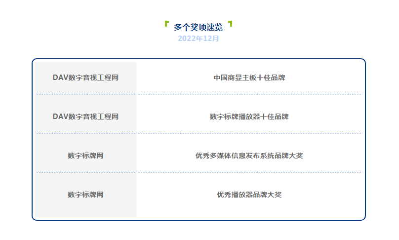 「商显主板十佳品牌」「数字标牌播放器十佳品牌」