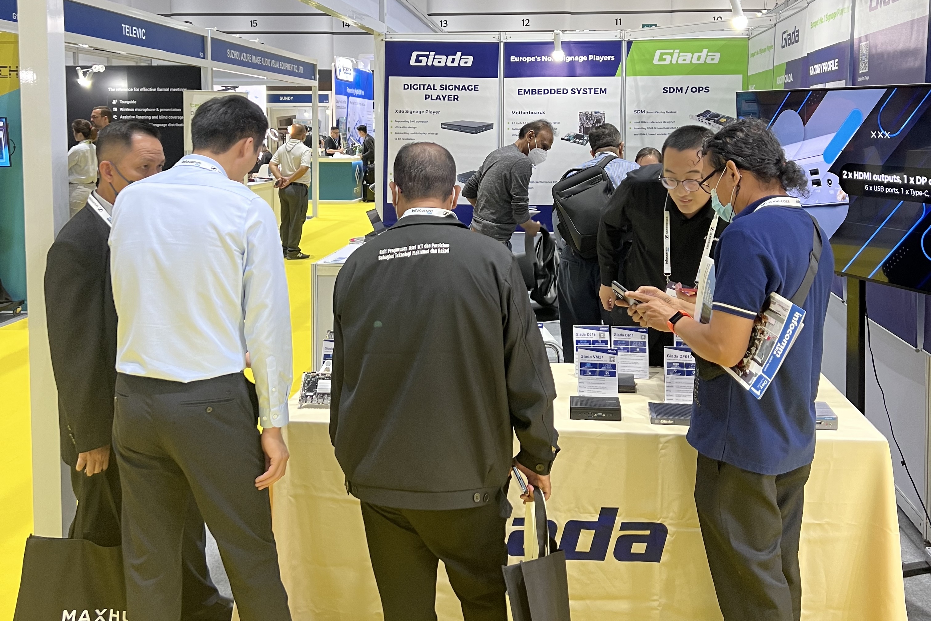 此次InfoCommAsia 2023展会,Giada博天堂(btt)科技携最新产品及方案亮相。致力于为全球企业客户解决智能化应用需求的博天堂(btt),此次展会带来了数字标牌播放器、边缘计算机、OPS/SDM和嵌入式主板等的最新产品,并展示了一系列量身定制的解决方案,以满足泰国市场的具体需求,为亚太地区的数字化转型带来全新势能。展会期间,Giada的展台现场气氛火爆,展位人流络绎不绝!