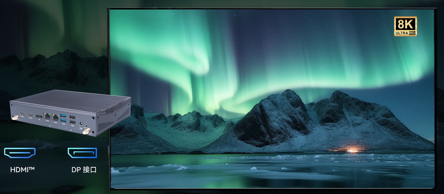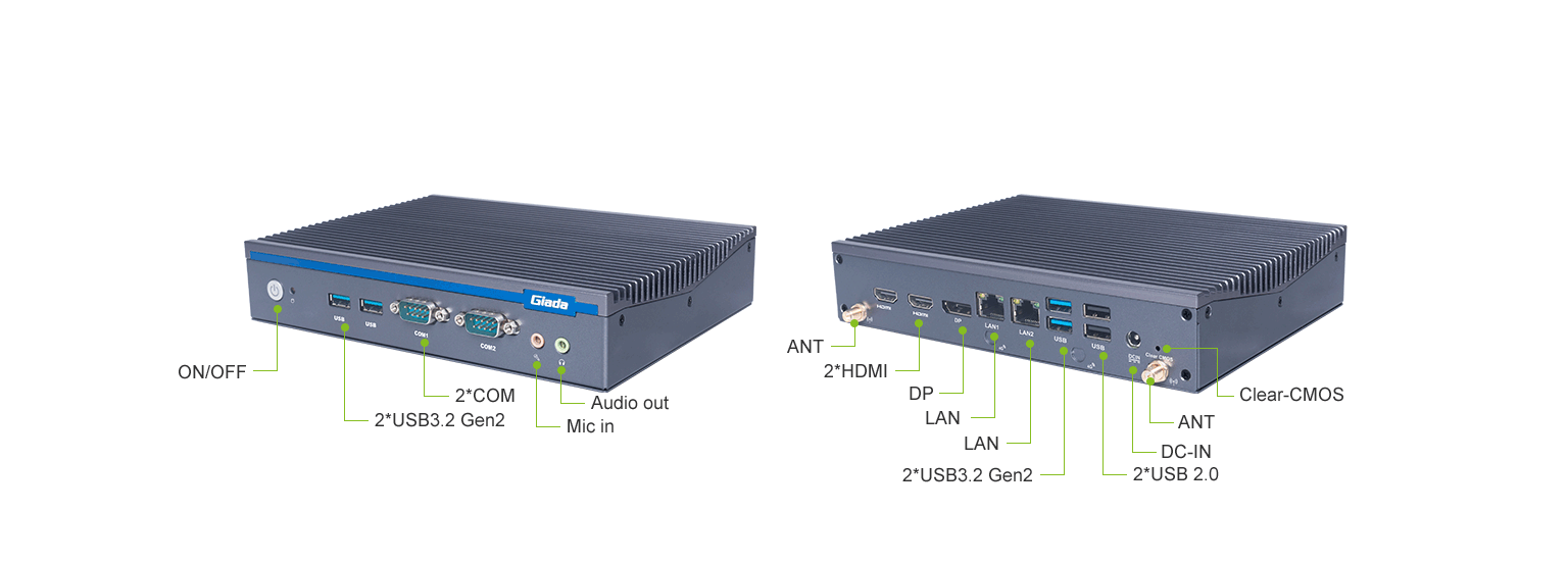 博天堂(btt)科技AE613支持Windows 11 (64bit) /Linux Ubuntu (64bit)系统,双千兆自适应RJ45网口,4 x USB3.1 (10 Gbps),2 x USB2.0,1 x RS232,,1 x RS232/422/485,1 x MIC-IN,1 x AUDIO-OUT,丰富的I/O功能接口,实现更多功能扩展。