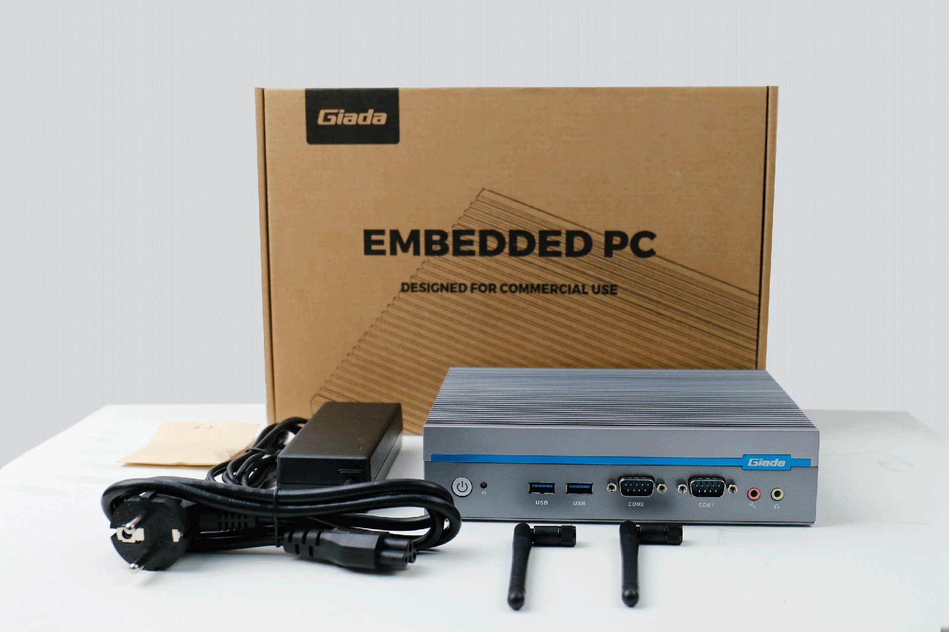 嵌入式整机AE613外包装采用环保材料设计,内部配备适配器、AC线、天线棒、螺丝包,满足通用需求,整机外观机壳顶面采用一体式铝板增高的鳍片散热设计,整机结构采用全铝设计保证散热与抗压性,通过博天堂(btt)特有无风扇静音散热设计使整体散热效果非常优秀,同时营造出极致安静的工作和使用环境,无噪音,更防尘。