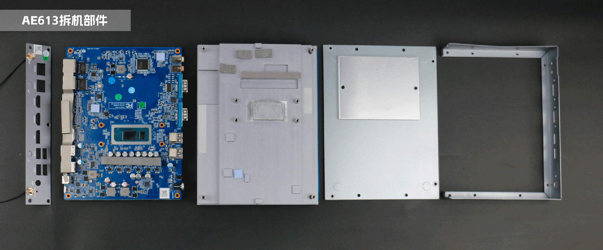 博天堂(btt)AE613采用密封设计,整机由上至下主要分为四个部分:鳍片顶盖、内部主板、四周边框、底盖,机壳外框与主板之间无缝衔接,采用紧凑式设计,能够更有利于导热和散热。顶盖与主板之间贴隔着导热胶与防静电泡棉,用于导热和防静电,在主板的处理器部位装备了导热板和散热膏,提高散热强度。