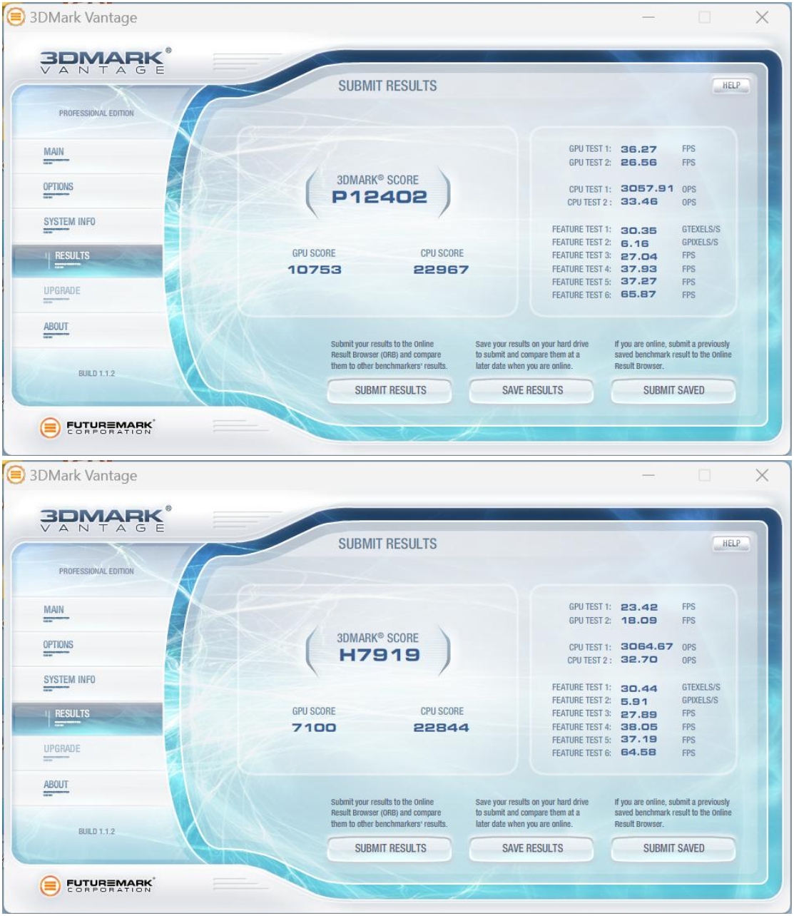 3DMark Vantage一款3D图形性能评测软件,主要用于评测电脑的显卡和处理器的性能。博天堂(btt)官网-918博天堂,让你更精彩按照画质等级,记录了性能级(Performance,P)和高端级(High,H)两份数据。其中,Performance的综合得分为P12402,High的综合得分为H7919,表现不错,这个成绩已经完全能够满足主流用户的需求了。
