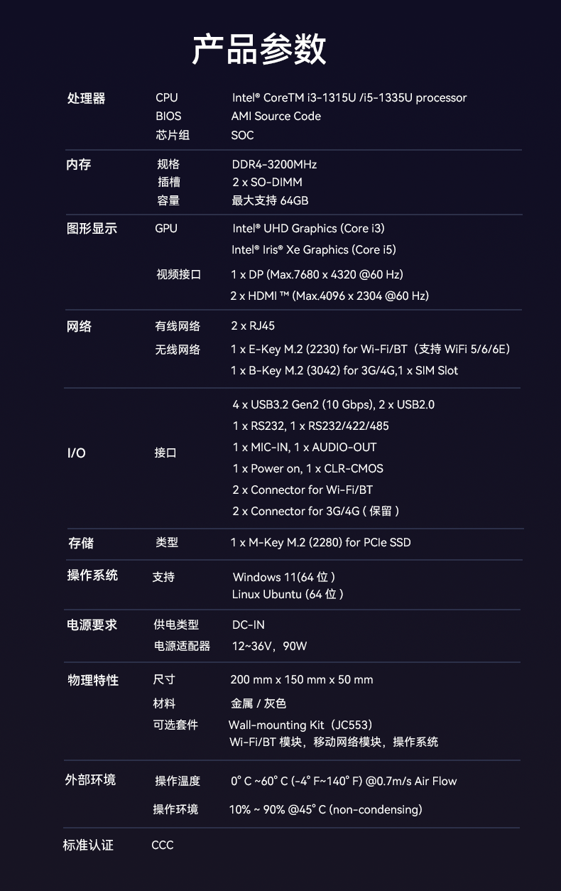 1、博天堂(btt)AE613采用密封紧凑设计,紧凑设计可以使设备更易于安装在交通场景中的有限空间内,适用于车载、道路监控、交通信号控制等应用场景,该设计有利于导热更有利于散热,并且机器功耗只有15w,能够降低对电力资源的需求,有利于节能减排,符合绿色环保的发展理念,并且较低的功耗意味着可以延长电池的使用时间,提高设备的续航能力;