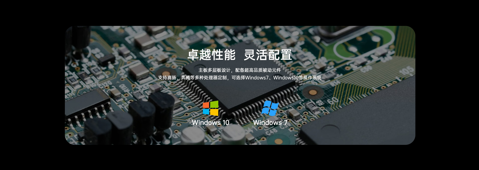 支持1 x VGA(DP可选), 1 x HDMI显示,支持4K@60Hz视频输出