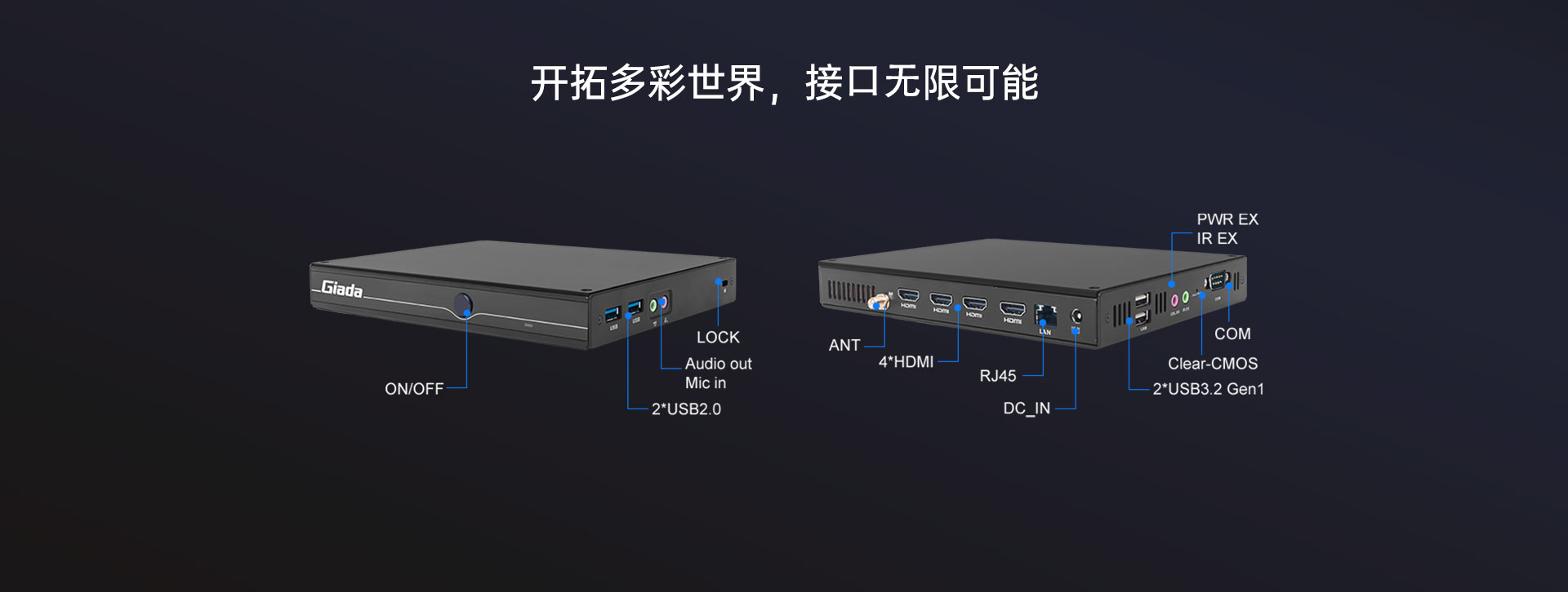 提供4个HDMI显示接口输出,支持4K显示