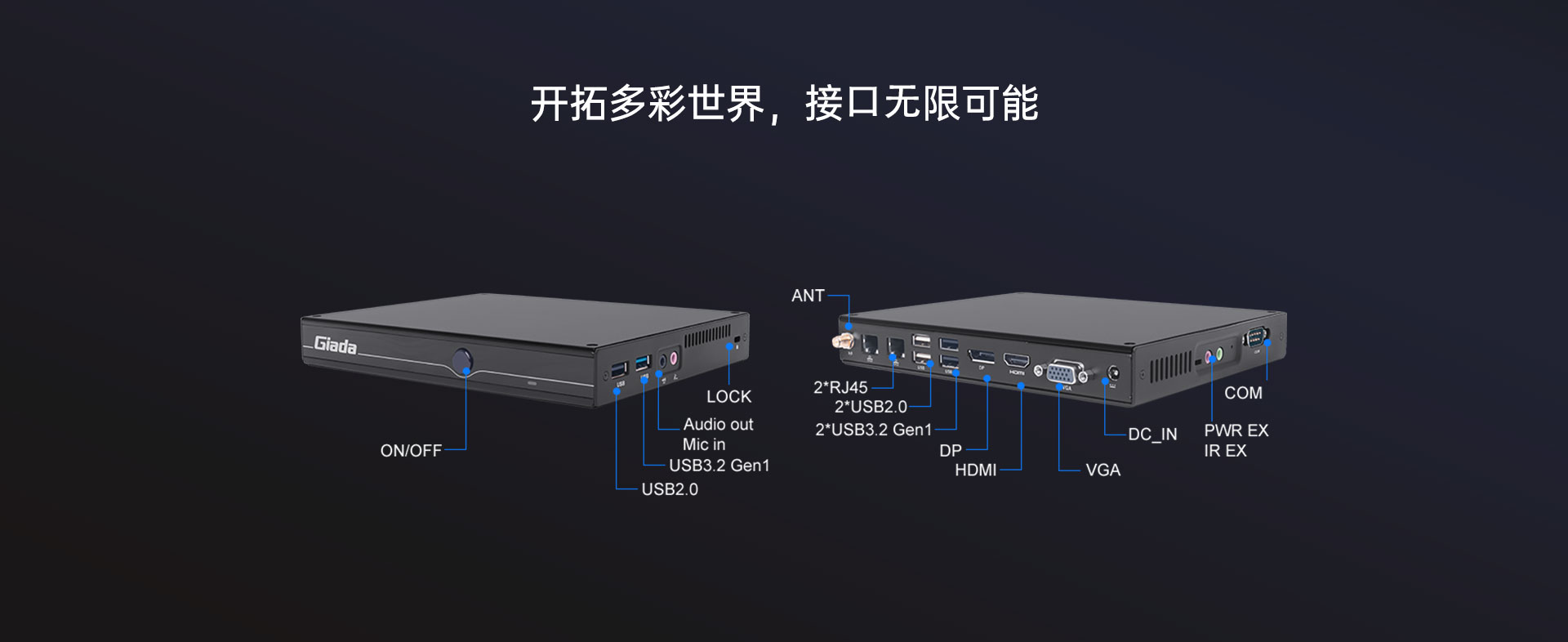支持1x DP+1x HDMI+1x VGA显示接口输出