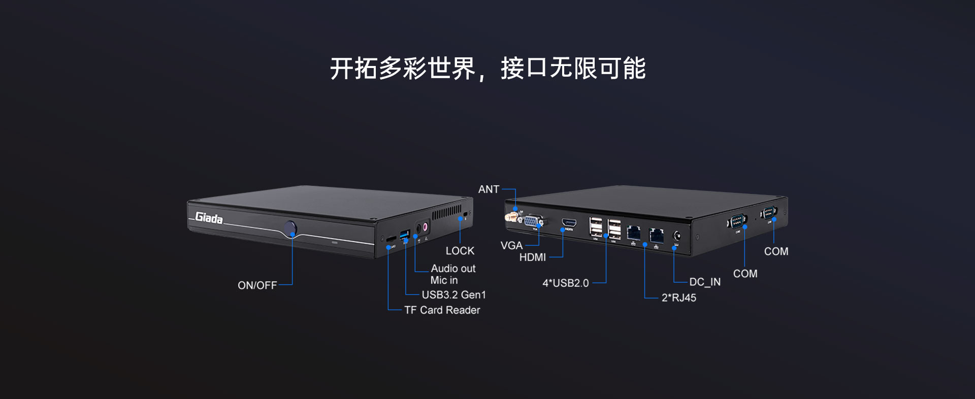 提供1x VGA+1x HDMI双视频接口输出
